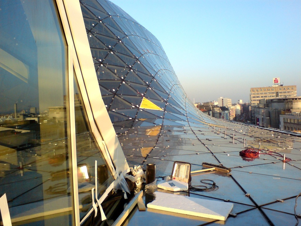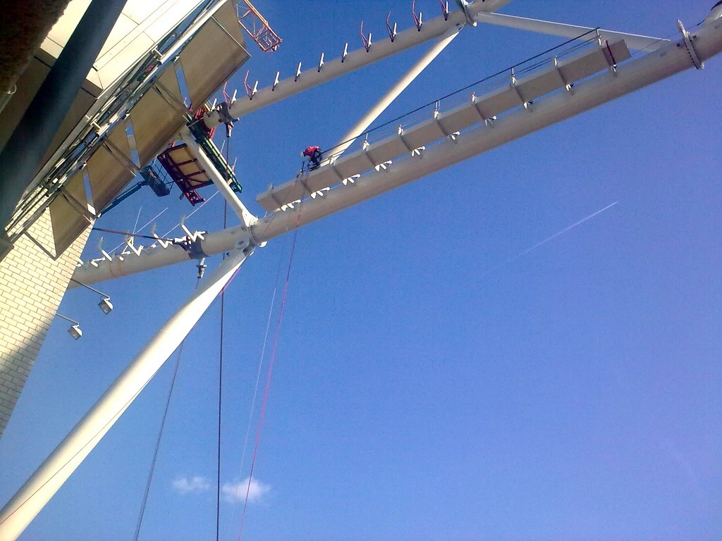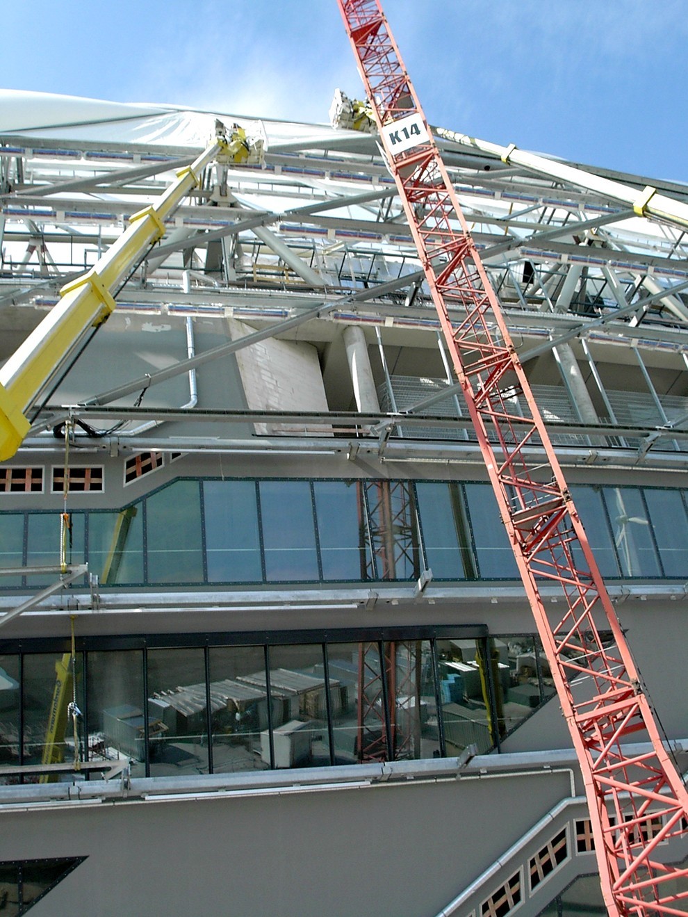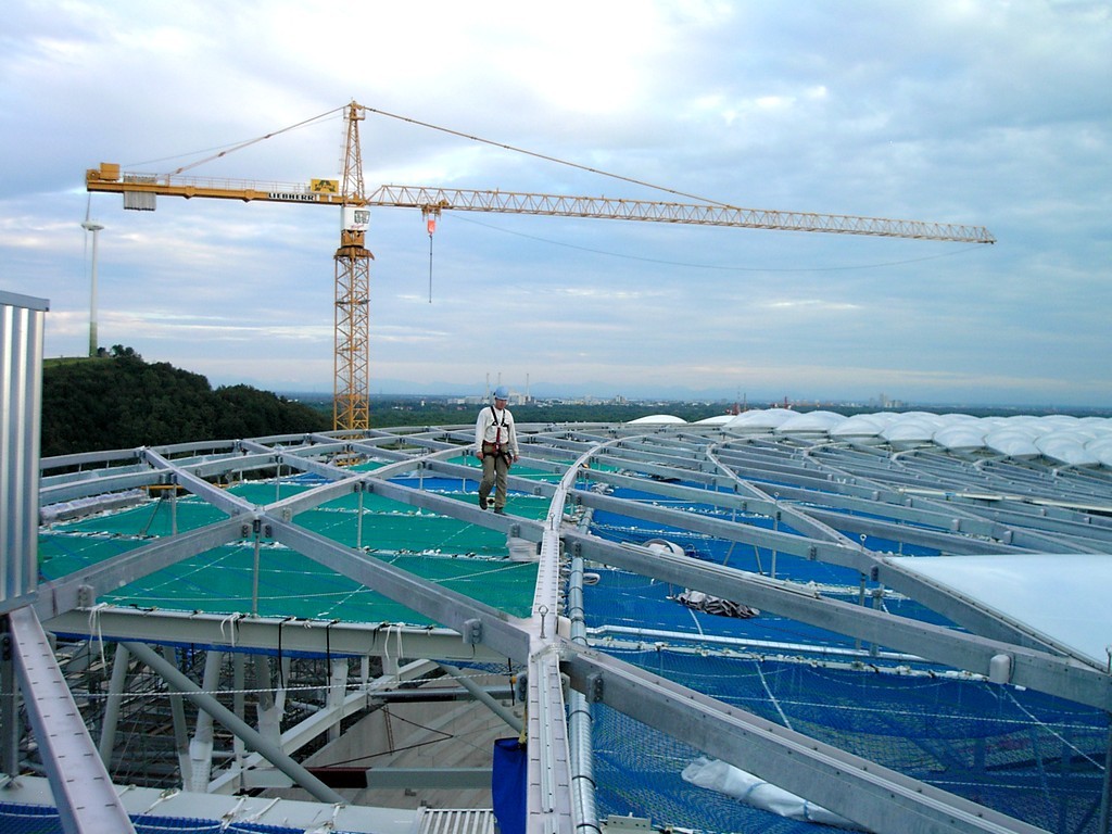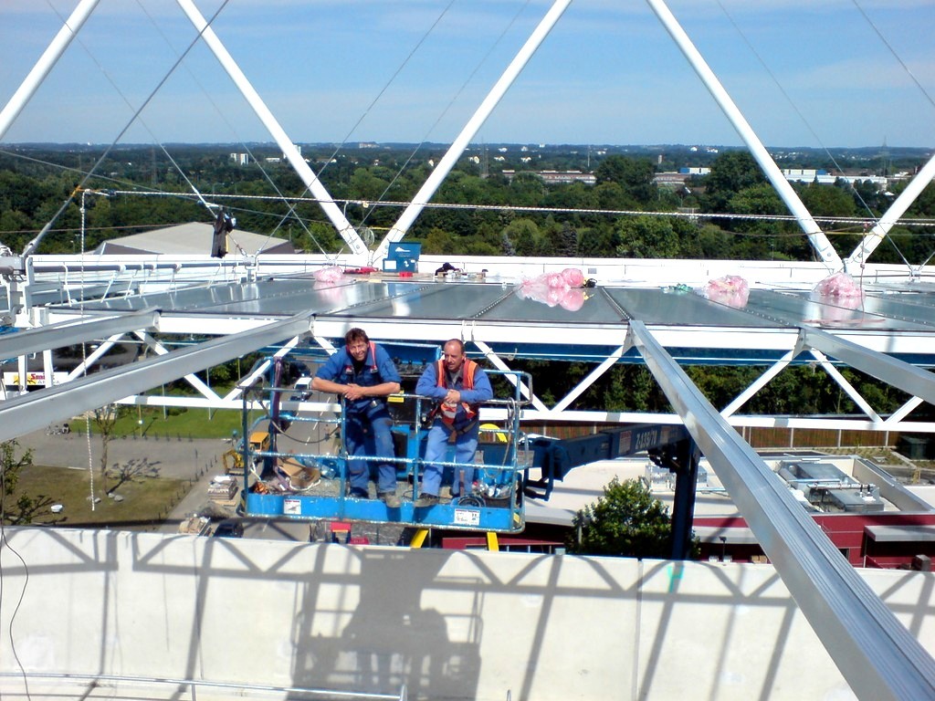 Montageunterstützung beim Bau der Gebäudehülle mittels ETFE-MembraneEs wurde die europaweit grösste Single-Skin-ETFE-Folie verbaut!