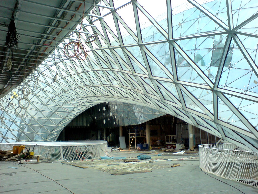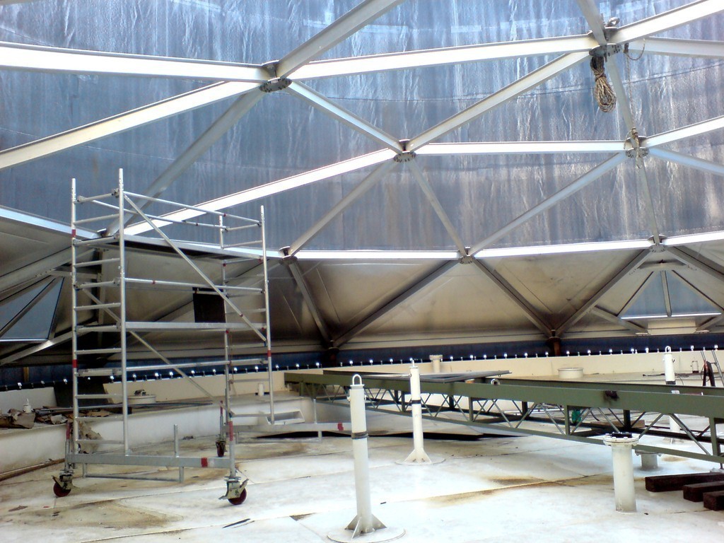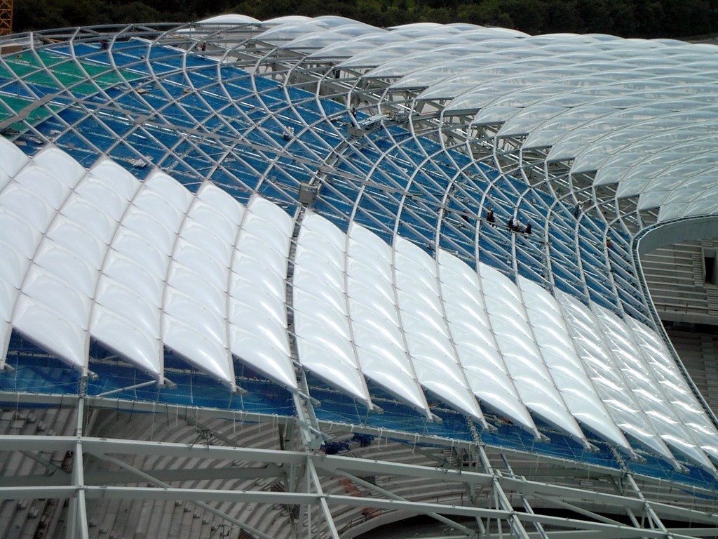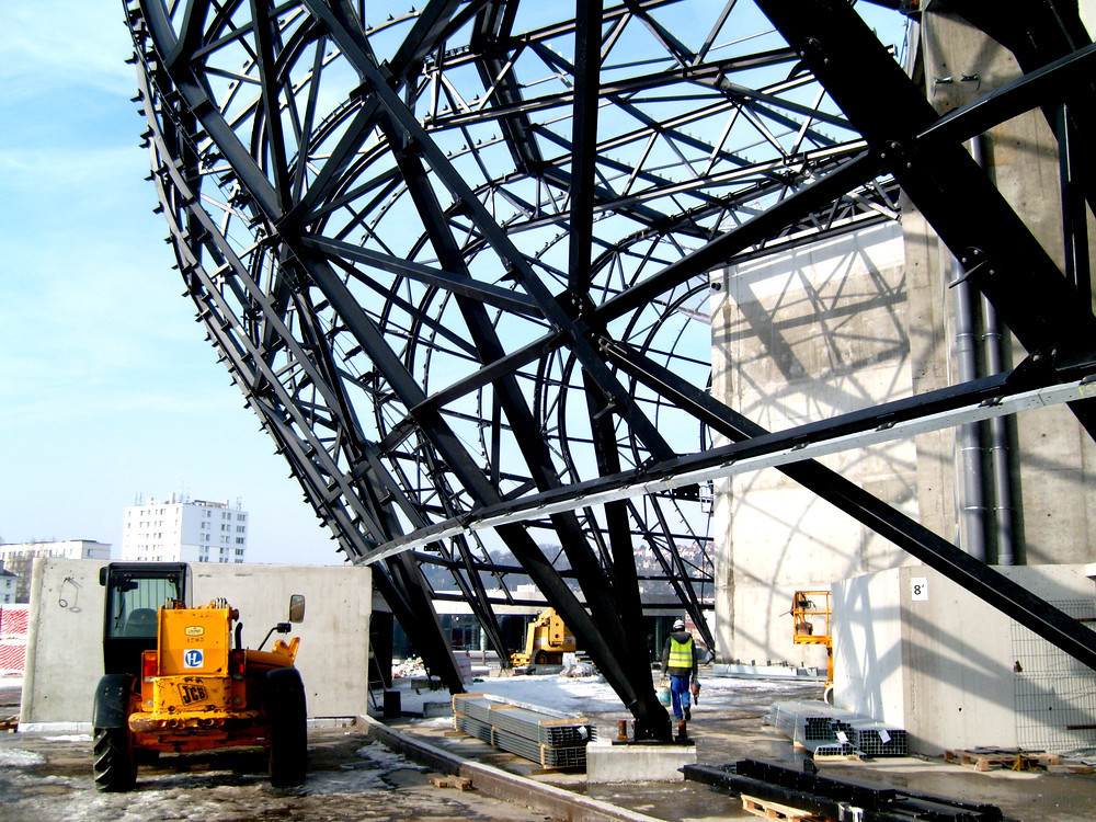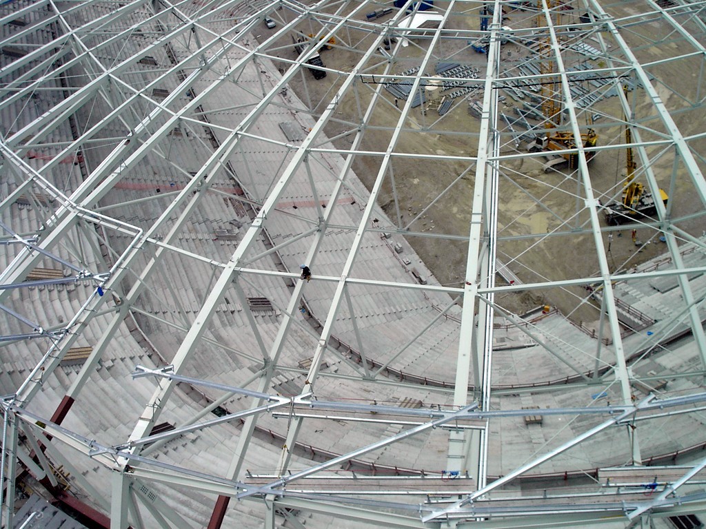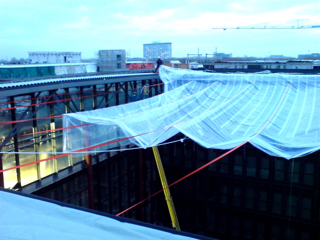 Montageunterstützung beim Bau der Gebäudehülle mittels ETFE-MembraneEs wurde die europaweit grösste Single-Skin-ETFE-Folie verbaut!