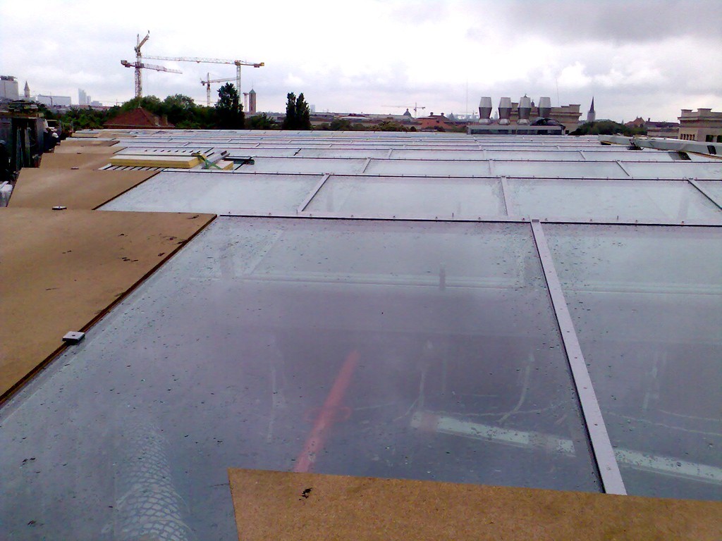 Anschliessende Installation der Dachmodule/Bauteile aus Stahl und Makrolon®.