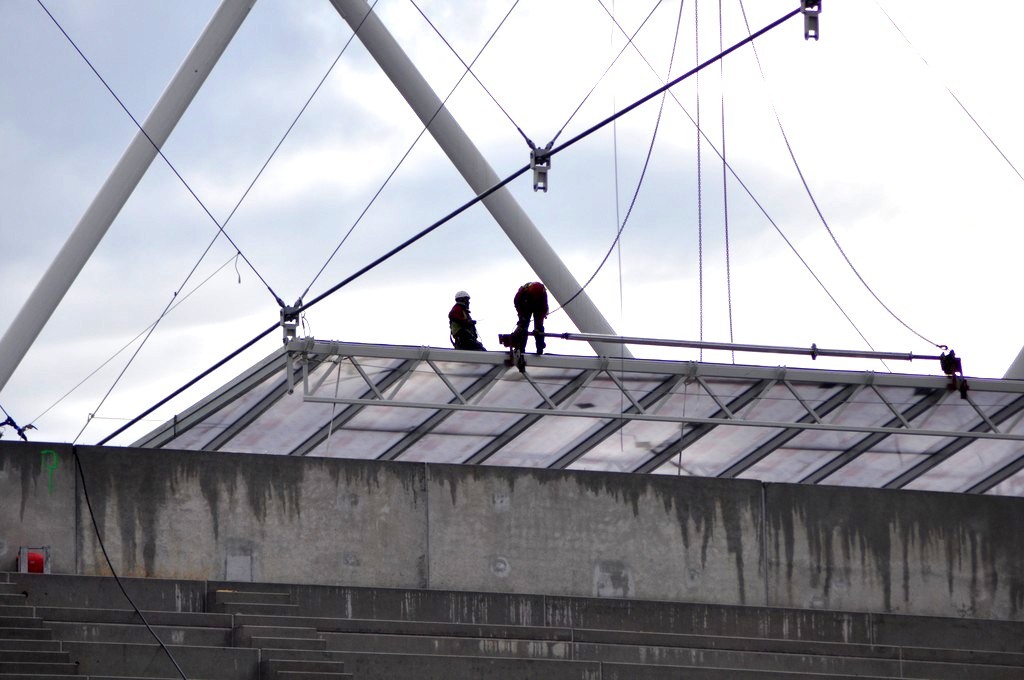 Unterstützung bei der Membrankissenmontage für die komplette Gebäudehülle der Allianz-Arena