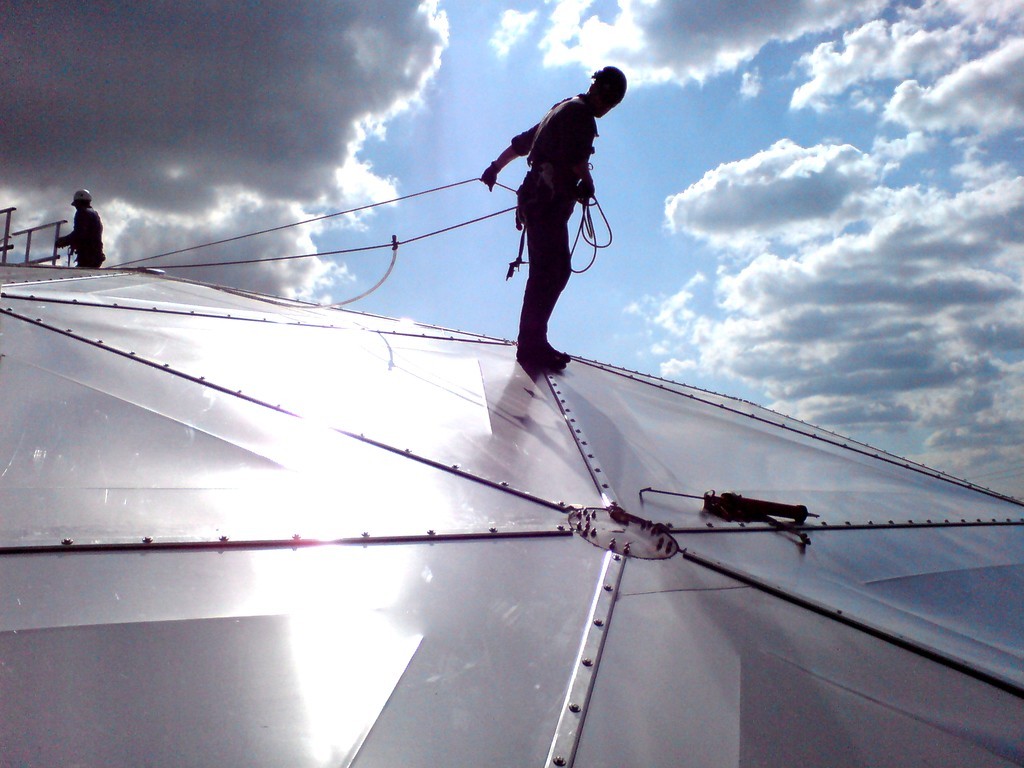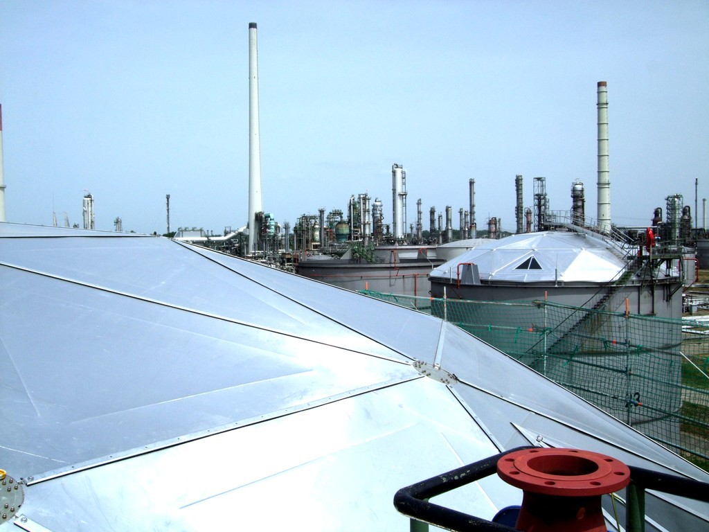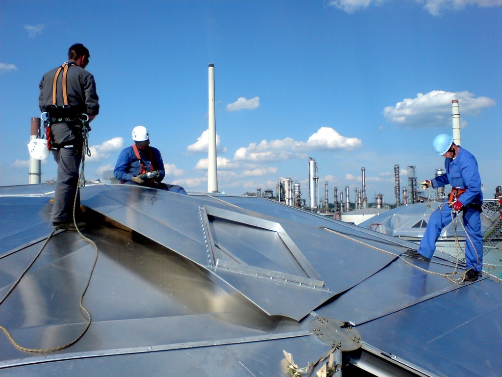 Montage von Dächern in Alu-Dome-Bauweise auf Tanks für E10-Bio-Sprit und gleichsame Abdichtung derselben