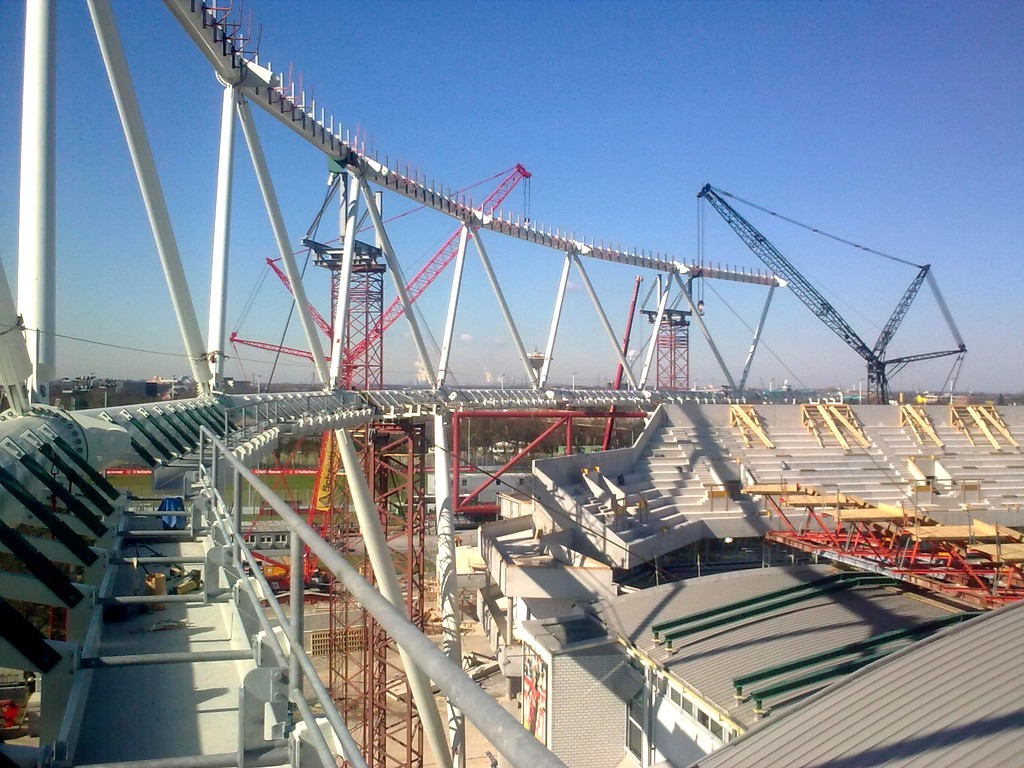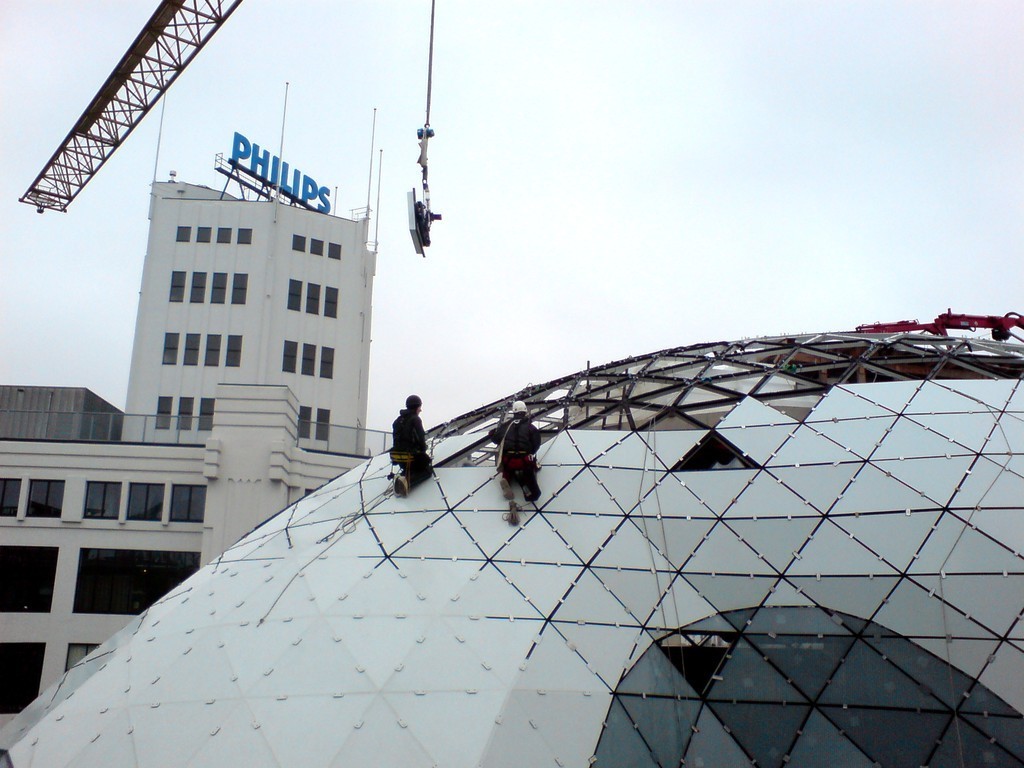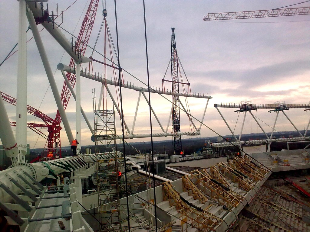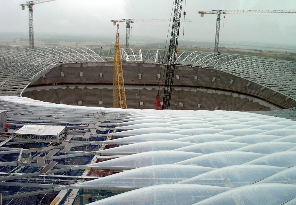 Montageunterstützung beim Bau der Gebäudehülle mittels ETFE-MembraneEs wurde die europaweit grösste Single-Skin-ETFE-Folie verbaut!