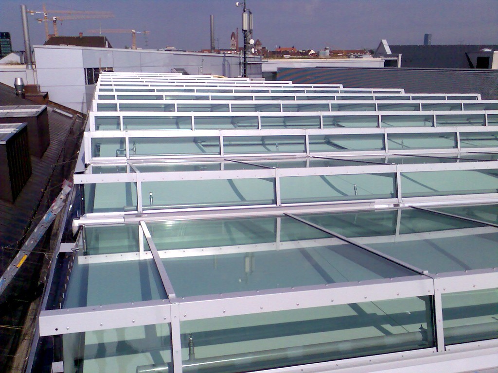 Anschliessende Installation der Dachmodule/Bauteile aus Stahl und Makrolon®.